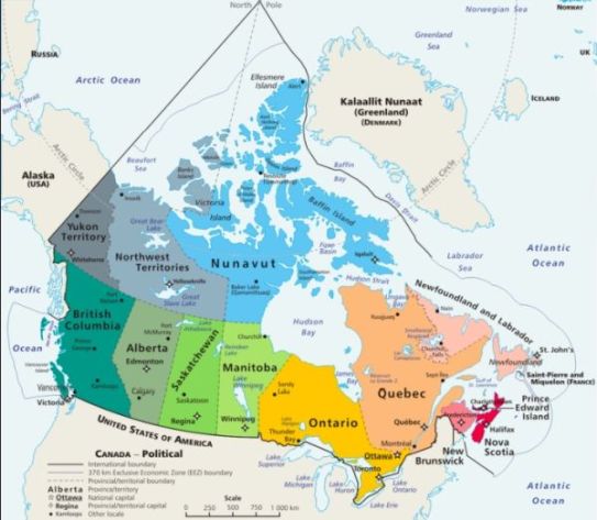 Il Canada, membro del Commonwealth - e del G7 - è una monarchia costituzionale; il sovrano è la regina Elisabetta, come altri 13 stati fra cui Australia, Nuova Zelanda, Belize etc. E’ organizzato su base federale: si compone di 13 Province dotate di autonomia, di dimensioni molto variegate, che hanno aderito alla federazione in tempi molto diversi, dal 1867 al 1949.