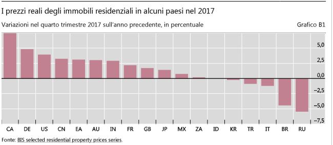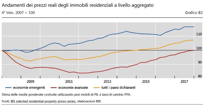 Se guardiamo a un periodo più lungo, si osserva che “i prezzi degli immobili continuano la loro lenta ripresa in tutto il mondo”. Dopo la crisi “i prezzi reali medi degli immobili residenziali nelle economie avanzate hanno toccato il minimo nel 2011-12. Dal 2012, hanno continuato ad aumentare e sono ora tornati sui livelli precedenti alla crisi”.