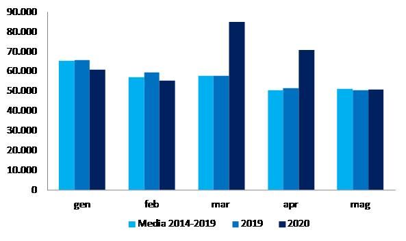 Numero di decessi mensili in Italia tra gennaio e maggio