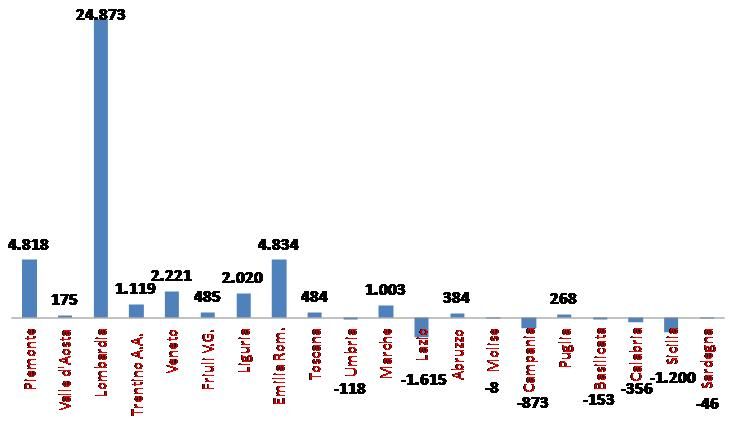 Le cose cambiano significativamente se si considera la distribuzione regionale.