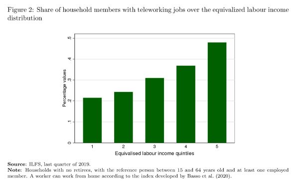 Al contrario, le famiglie che hanno potuto lavorare da casa sono quelle che stanno nel quintile più alto.