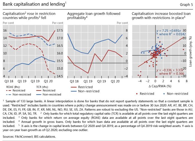 Gli esiti osservati dalla Bis sono coerenti con queste premesse teoriche. I prezzi delle azioni bancarie soggette a restrizioni sui dividendi sono diminuiti, ma non i credit default swap, a dimostrazione che il mercato non ha prezzato alcun rischio per la stabilità finanziaria di questi istituti. Al tempo stesso, la capitalizzazione bancaria è cresciuta, favorendo la stabilità finanziaria e insieme la politica di prestiti.