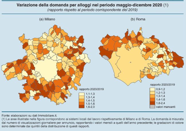 Alla base di questa ricomposizione ci stanno i cambiamenti indotti dalla pandemia, smart working in testa. Che evidentemente molti nuclei familiari giudicano come definitivo, al punto da orientare le proprie scelte di investimento verso i centri che, con minore spesa, possono garantire loro un miglioramento abitativo: una casa più grande, o magari indipendente; un giardino o altre comodità. E tali orientamenti “potrebbero mantenersi anche in futuro, soprattutto se le trasformazioni dell’organizzazione del lavoro divenissero o fossero ritenute in prospettiva permanenti”.
