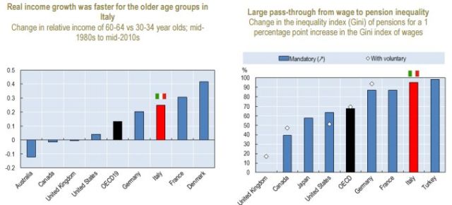Sempre l'Ocse: i redditi di coloro che hanno tra i 60 e i 64 anni in Italia negli ultimi 30 anni sono cresciuti in media del 25% in più rispetto alla fascia di età tra i 30 e i 34 anni. Lo diceva qualche tempo fa un noto istituto di ricerca.
