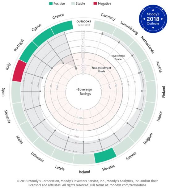 Promesse talmente farlocche che ci credono tutti, e anche Moody’s a quanto pare – e poi dice che solo i fessi danno retta ai politici – tanto è vero che il nostro paese, secondo la nota agenzia, rimane l’unico con una prospettiva negativa sul rating proprio perché riflette il rischio che “le future politiche del governo non affrontino in maniera sostenibile le sue vulnerabilità a shock economici o finanziari”.