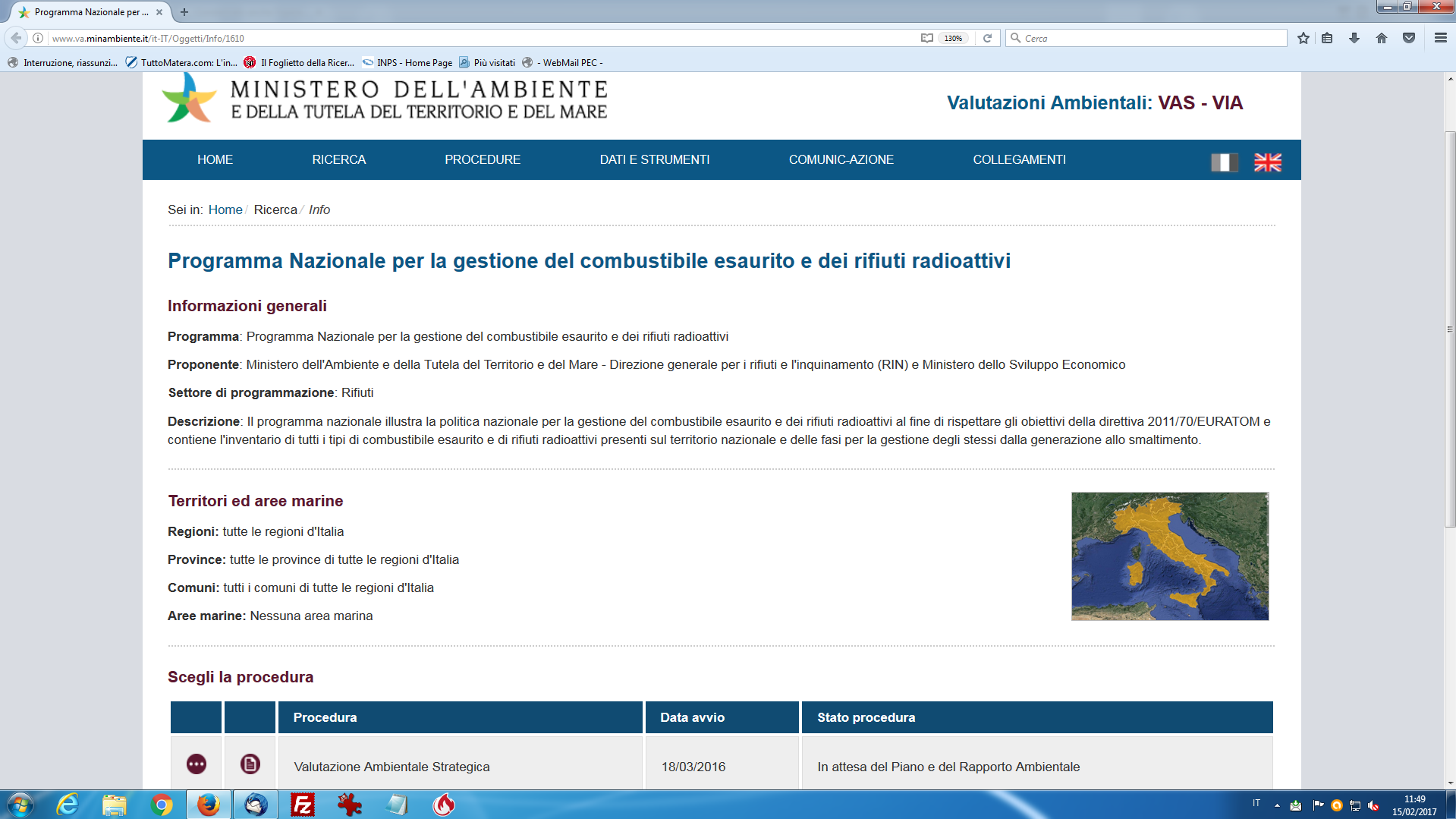 Ho scoperto nel sito del Ministero dell'Ambiente che quest'ultimo dichiara di essere in attesa del Rapporto Ambientale, che è il punto di partenza di tutta la procedura che dovrebbe portare a individuare il luogo ove costruire il deposito.