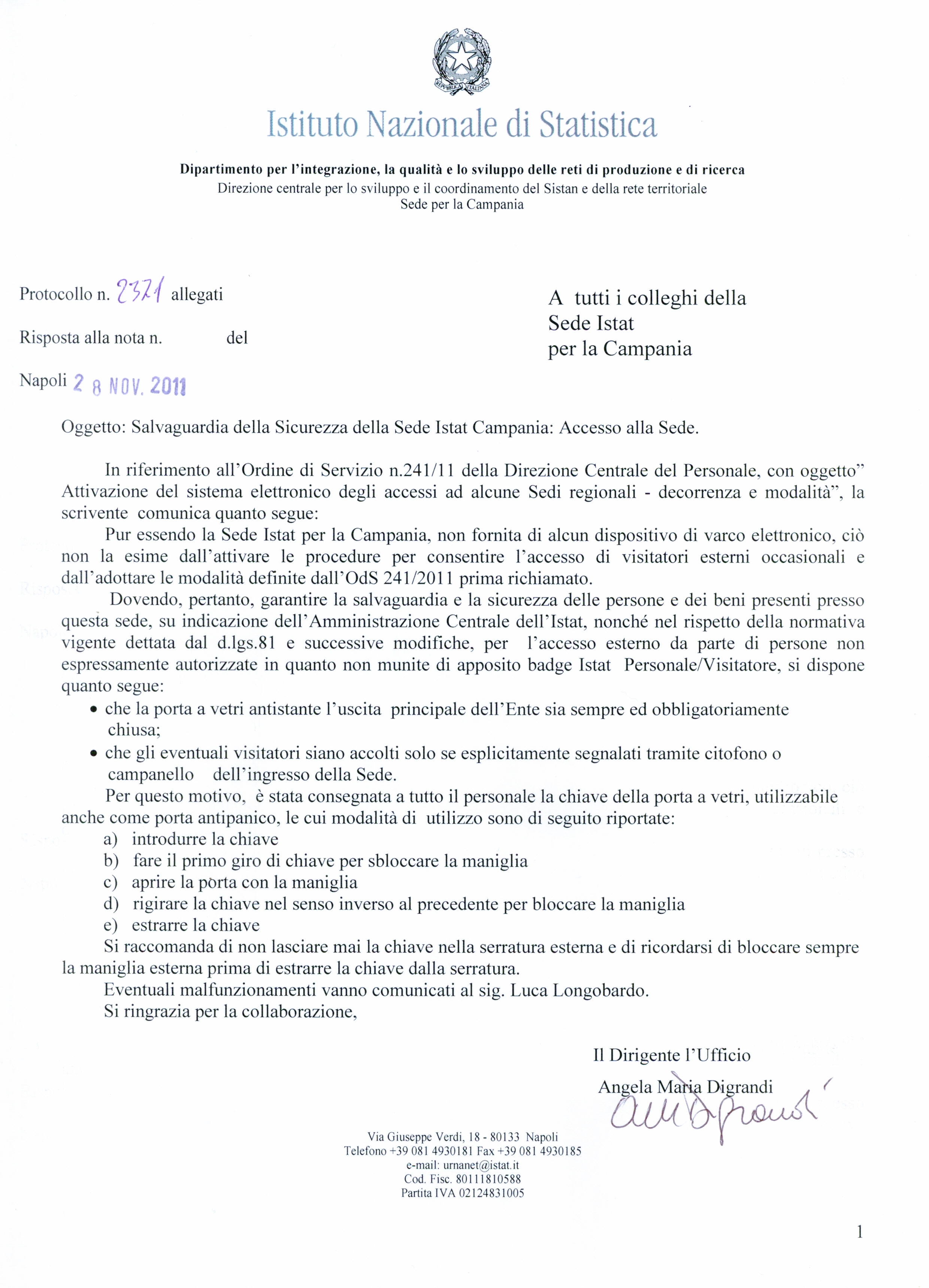 La dirigente dell'Istat di Napoli di recente ha diramato, ai sensi di un imprecisato d.lgs. 81, una nota che non chiude la porta in faccia a nessuno, anzi la spalanca a tutti. Basta, però, avere una memoria di ferro e attenersi scrupolosamente al manuale del perfetto usciere.