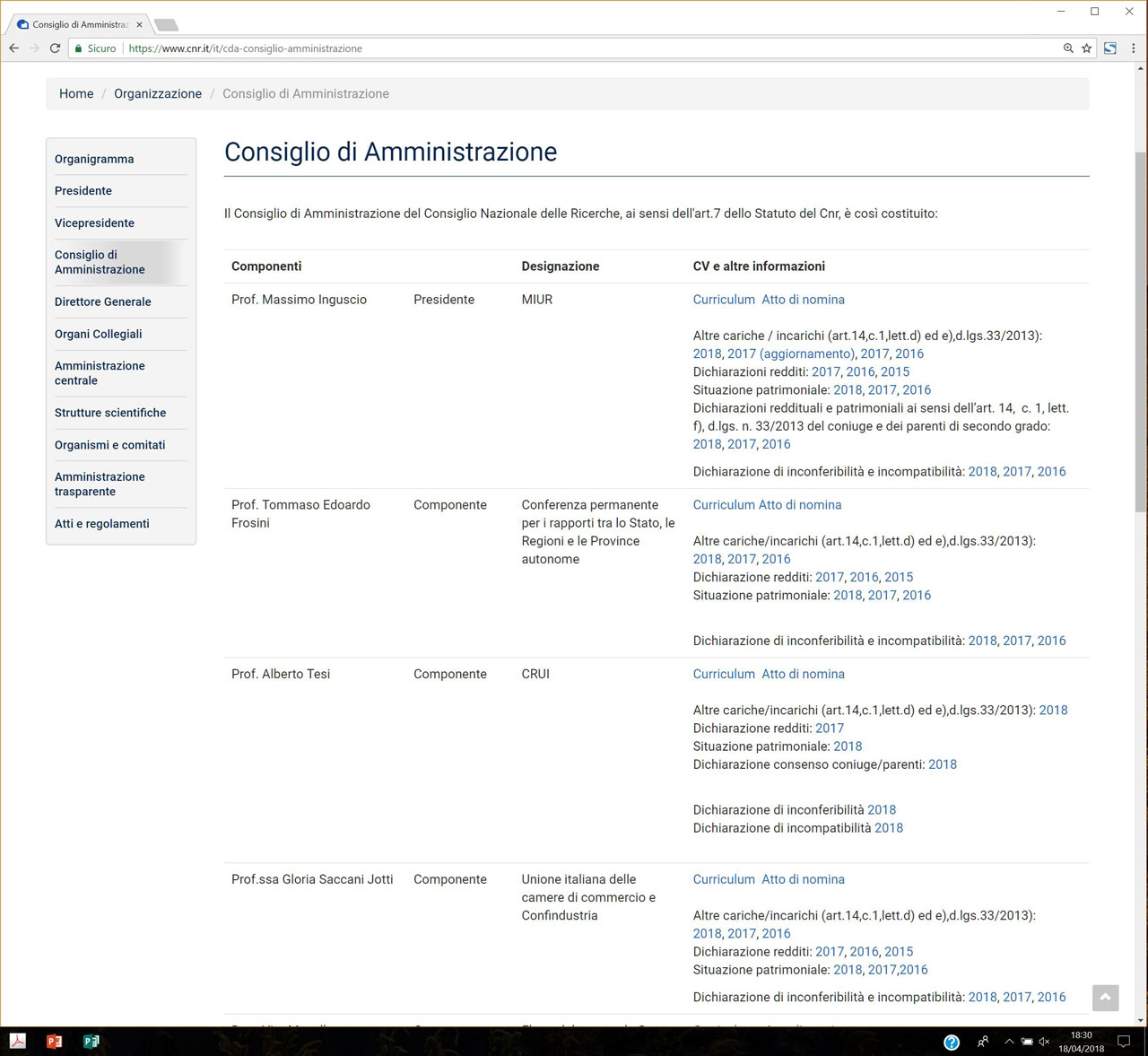 Nonostante sia passato un mese dalla proclamazione degli eletti alla Camera dei Deputati, dal sito web del Cnr risulta (almeno fino a ieri alle ore 18.30) che la professoressa Saccani continua a far parte del cda dell’ente di piazzale Aldo Moro, nonostante l’incompatibilità tra i due ruoli sia prevista in maniera chiara e inequivocabile dall’art. 15, comma 4, del vigente Statuto del Cnr.